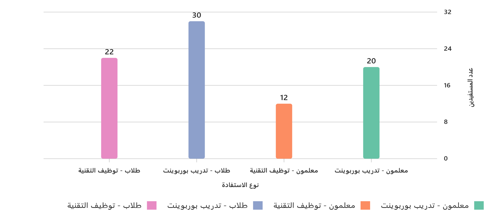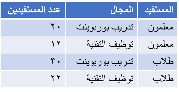 عدد المستفيدين 84 معلم وطالب